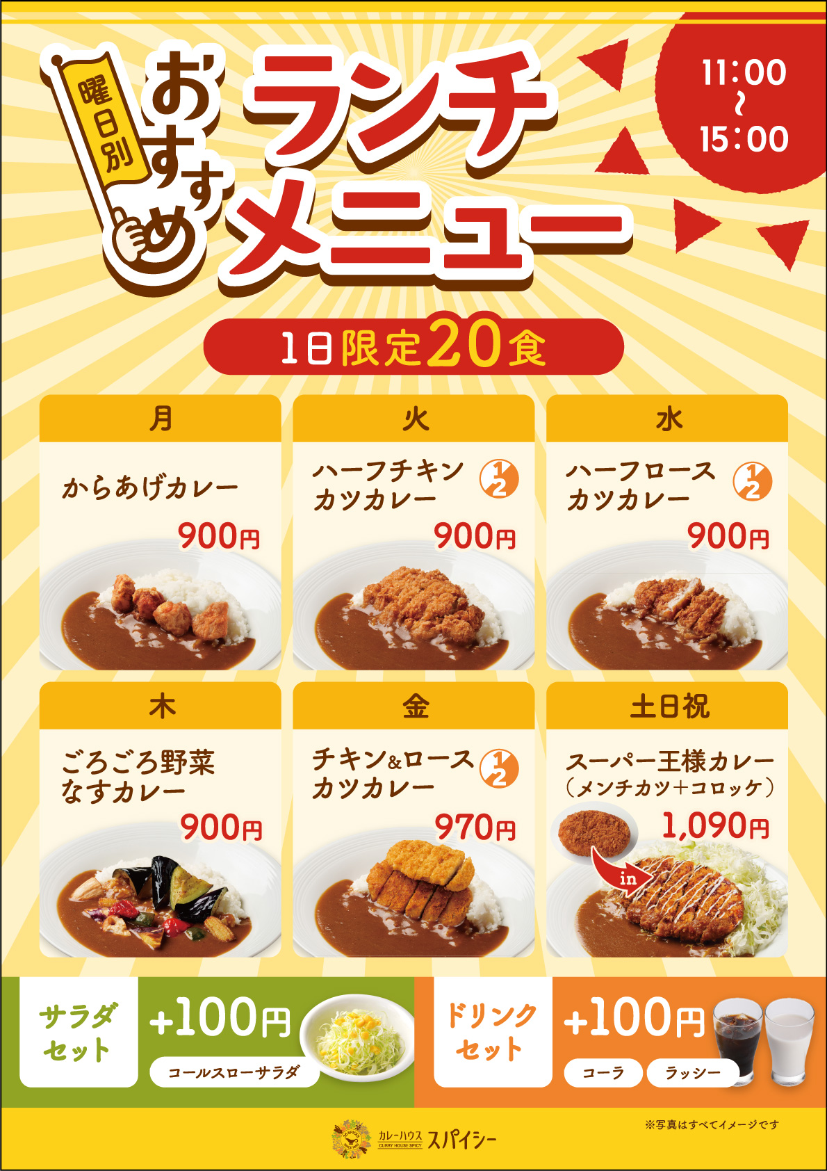 ☆日替わりで食べられるお得なランチメニュー(11:00~15:00)が登場しました!